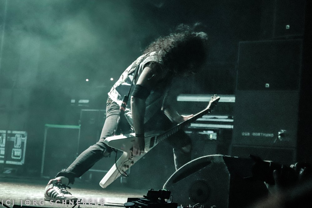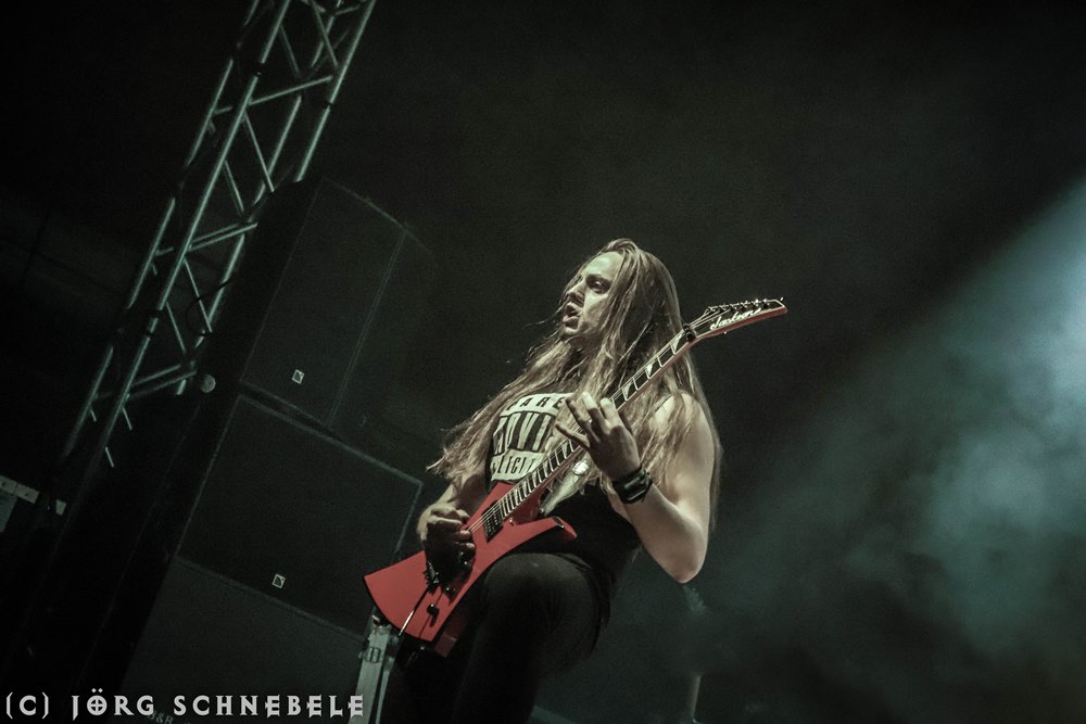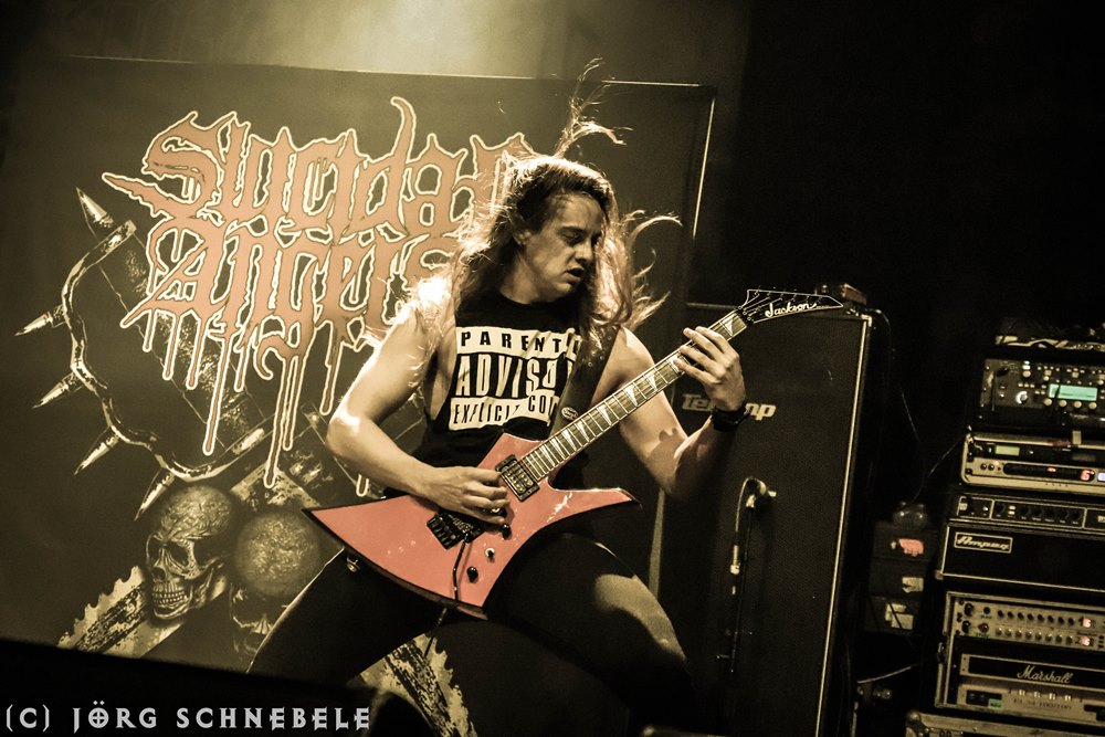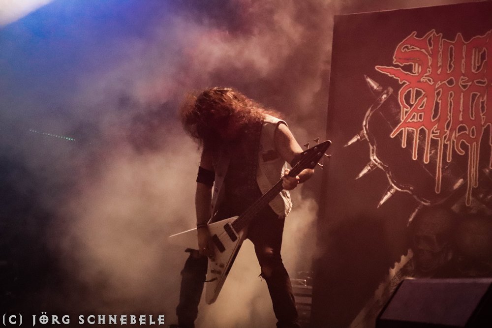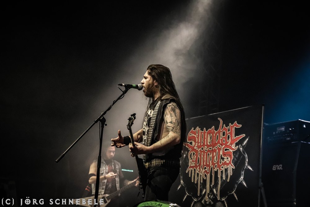 Suicidal Angels stiegen als zweite Band am Freitag beim Ruhrpott Metal Meeting auf die Bühne. Das Licht wurde langsam besser, so dass man die Griechen auch halbwegs vernünftig fotografieren konnte.
