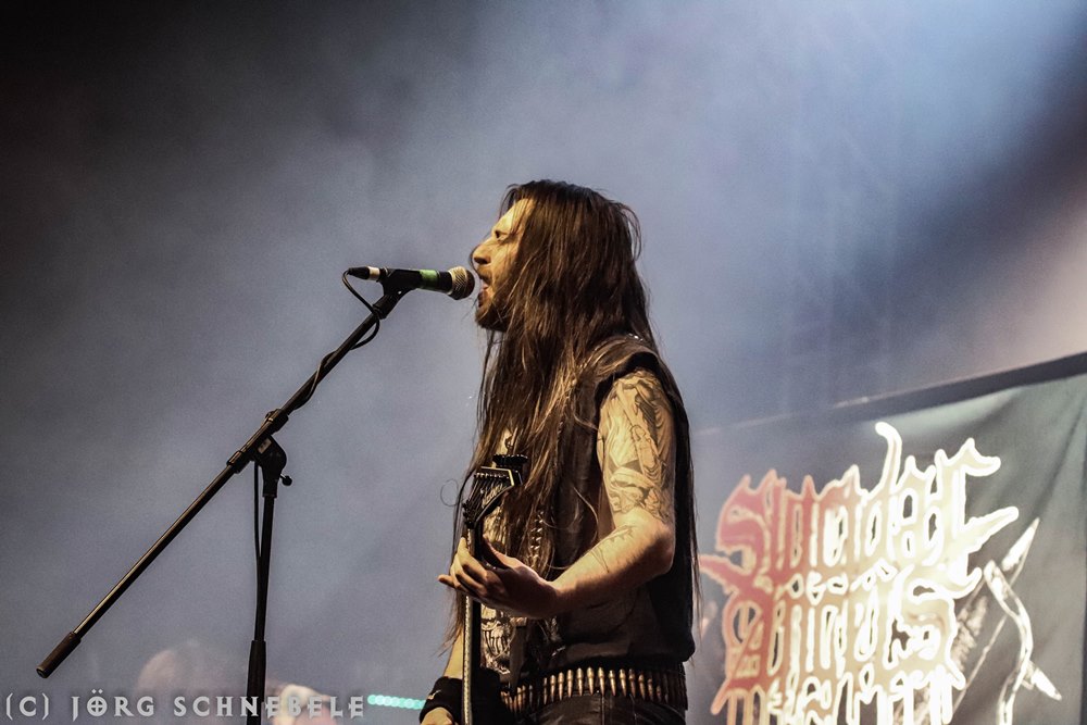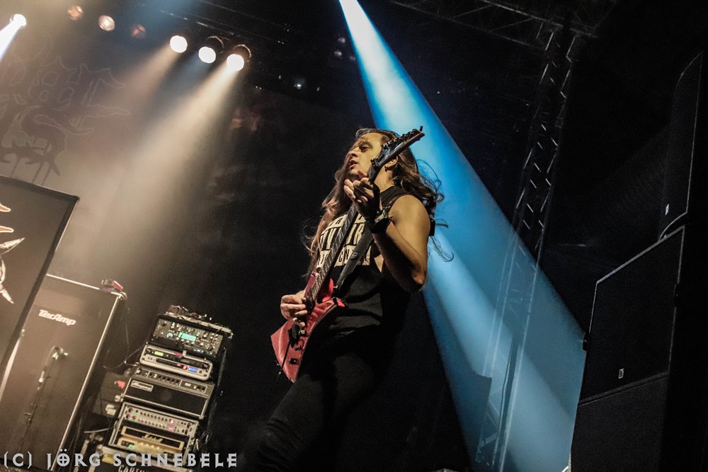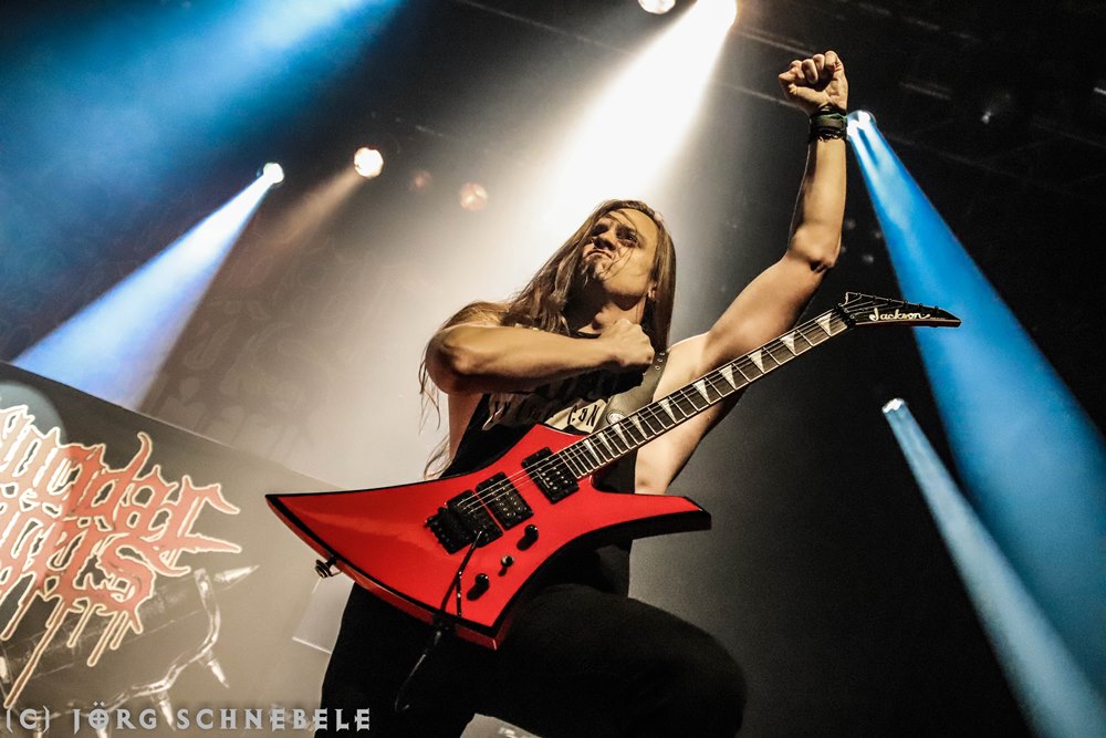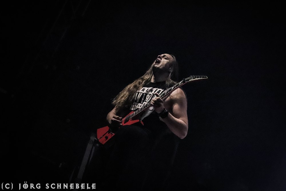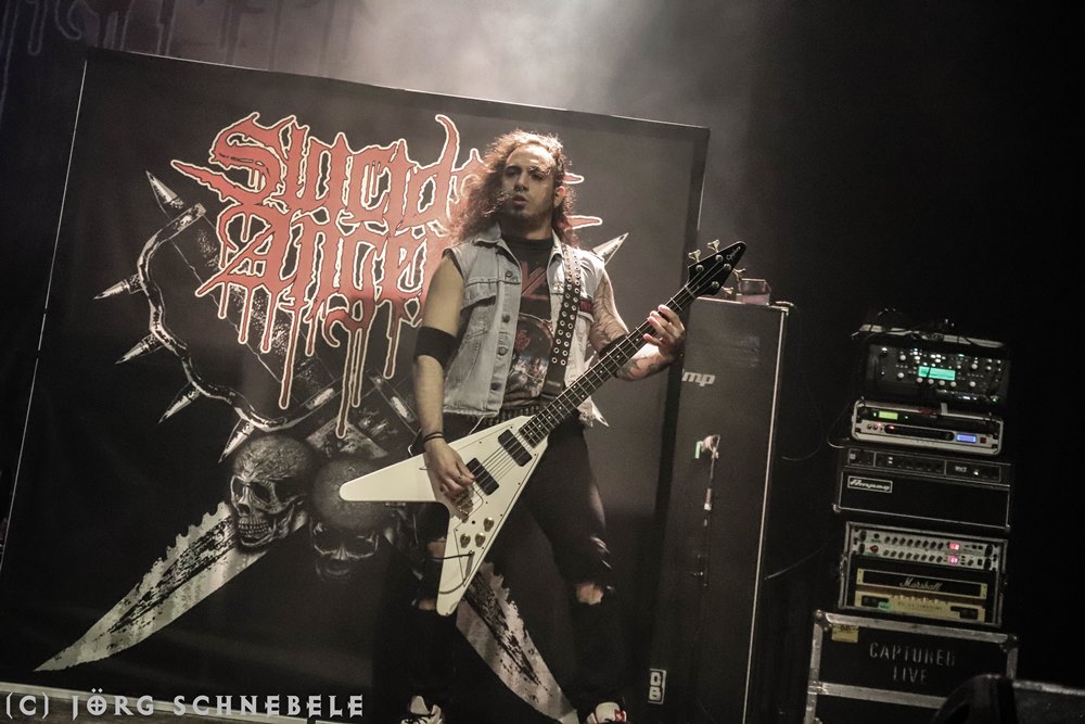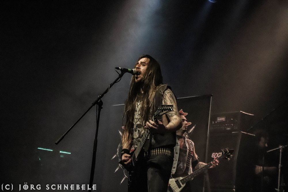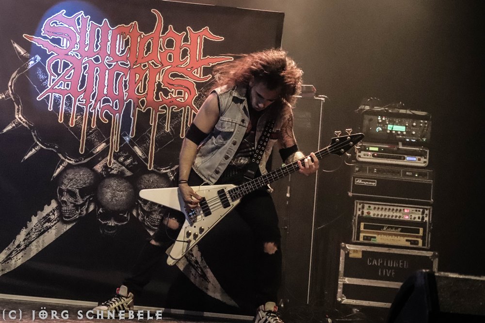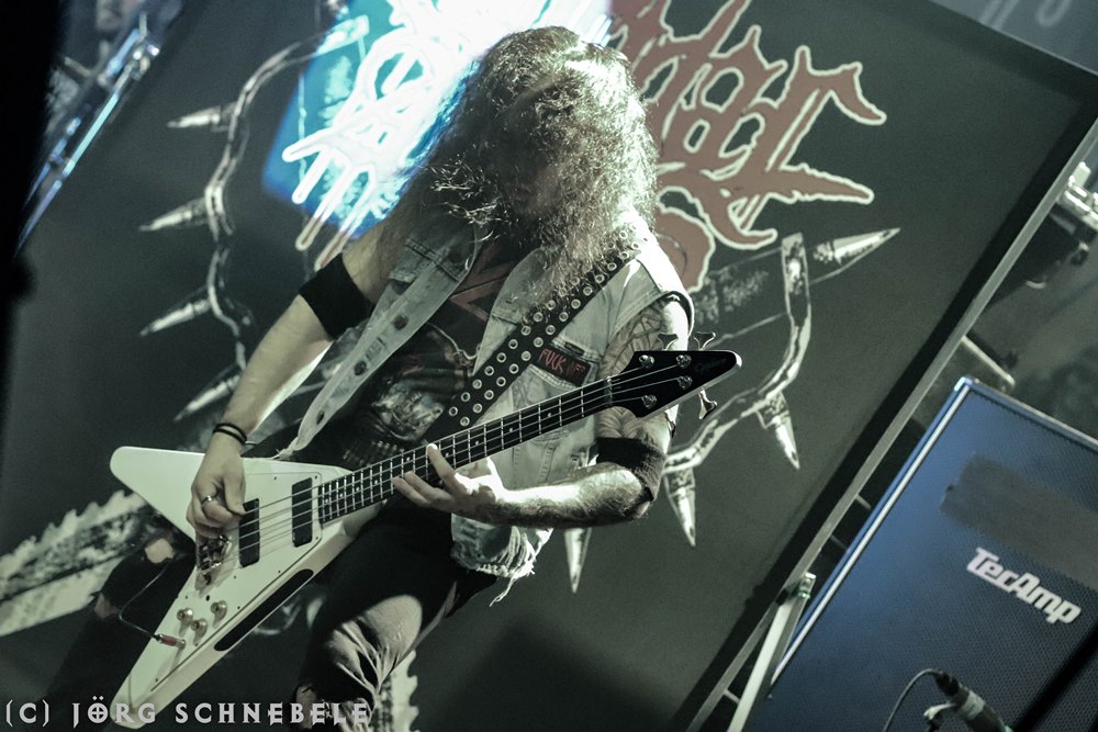 Das Publikum in der sehr gut gefüllten Turbinenhalle ging mächtig ab und so hatten Suicidal Angels mit ihrem Thrash Metal leichtes Spiel.