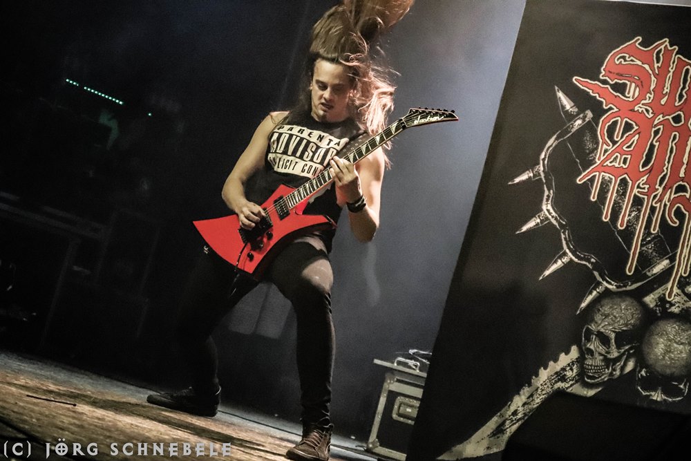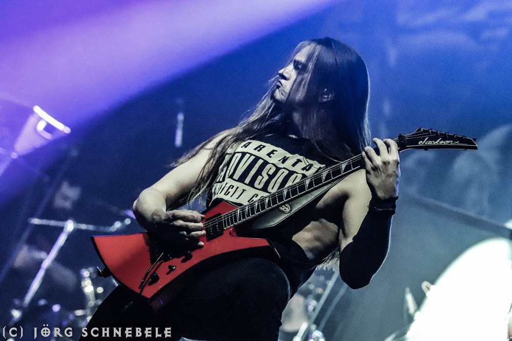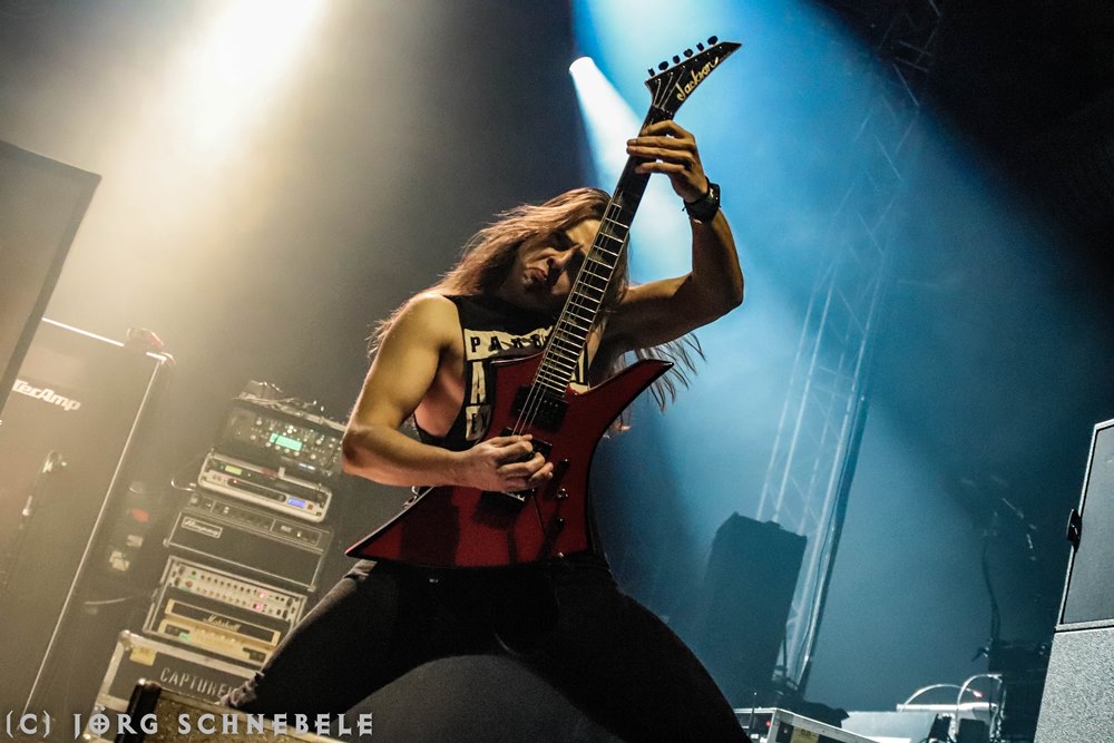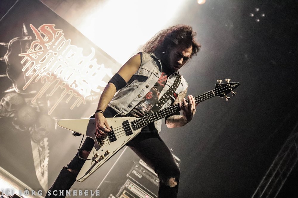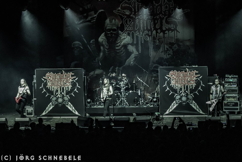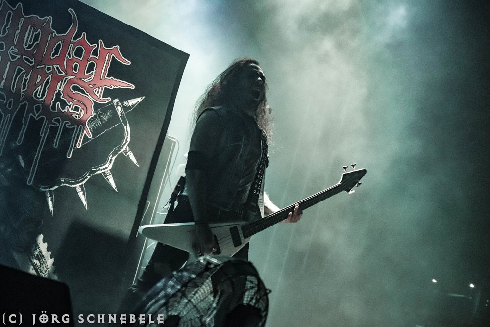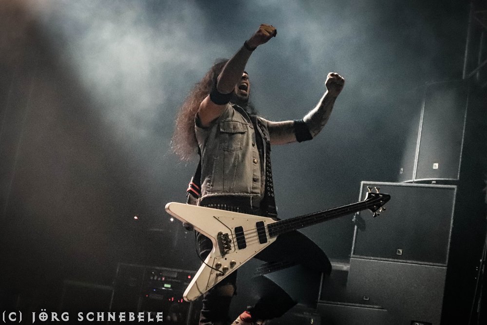 Das Publikum in der sehr gut gefüllten Turbinenhalle ging mächtig ab und so hatten Suicidal Angels mit ihrem Thrash Metal leichtes Spiel.