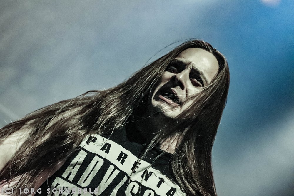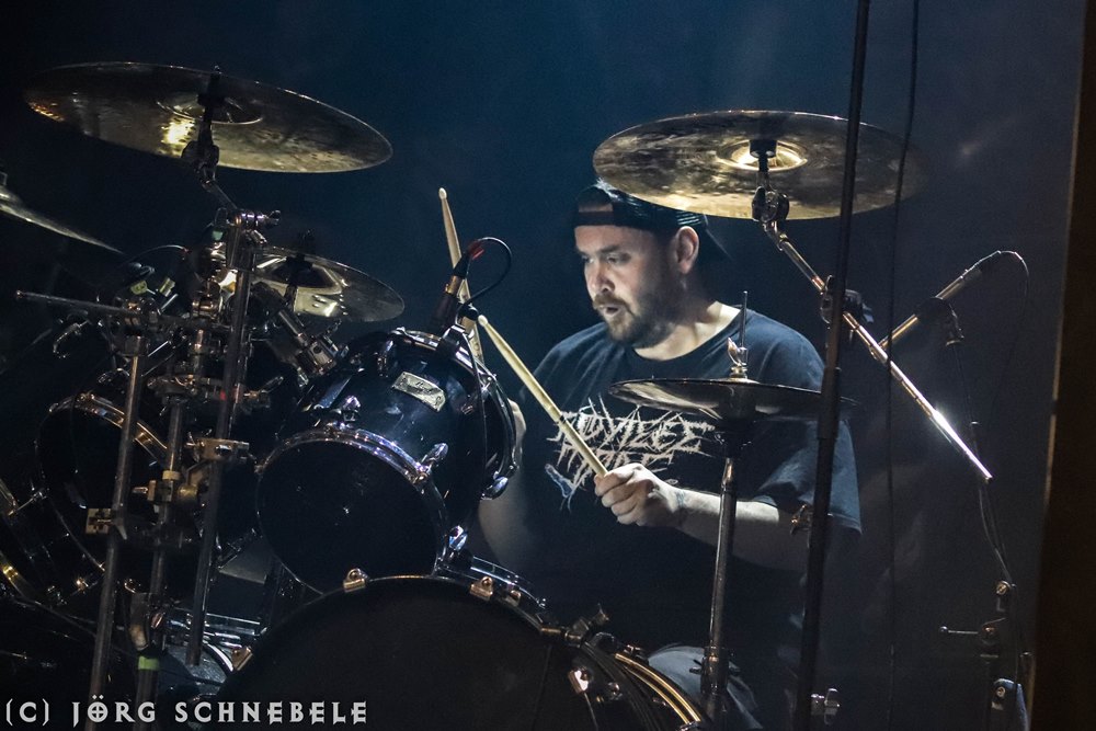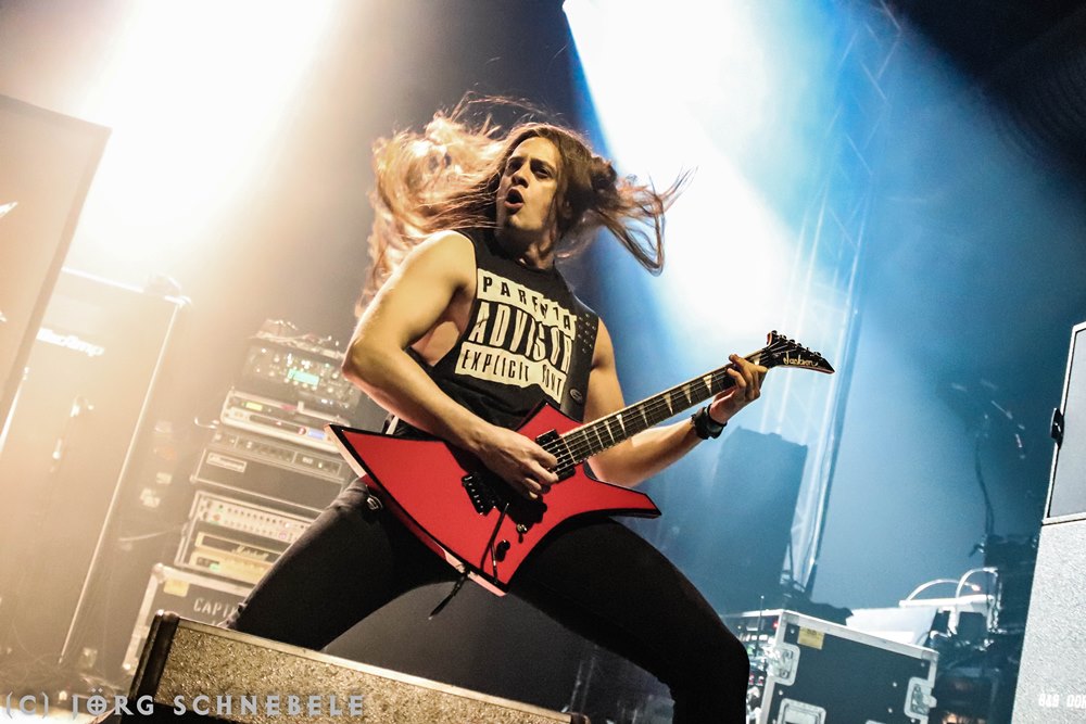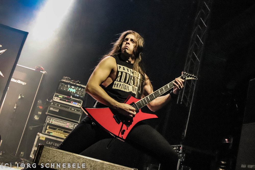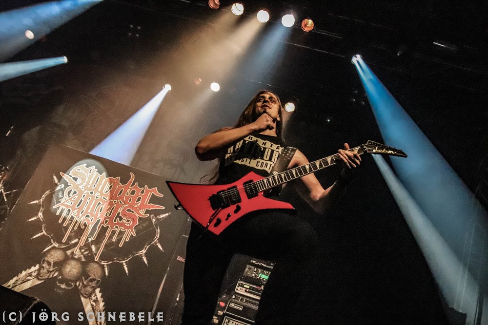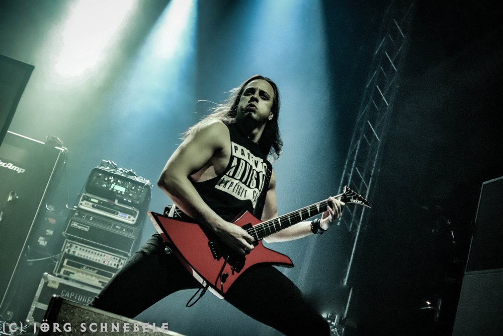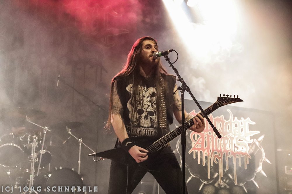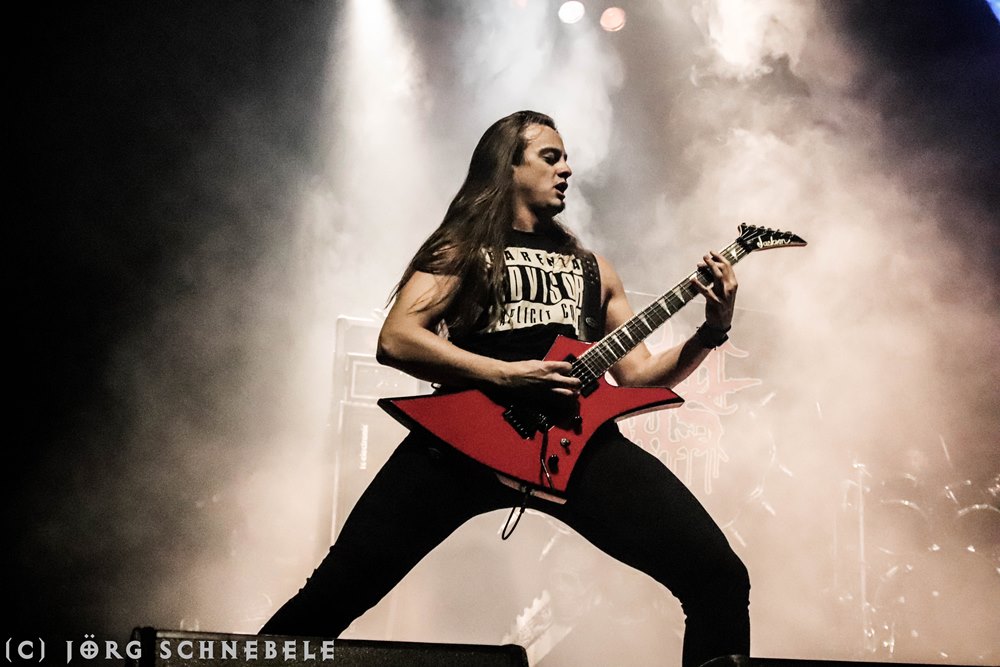 Das Publikum in der sehr gut gefüllten Turbinenhalle ging mächtig ab und so hatten Suicidal Angels mit ihrem Thrash Metal leichtes Spiel.
